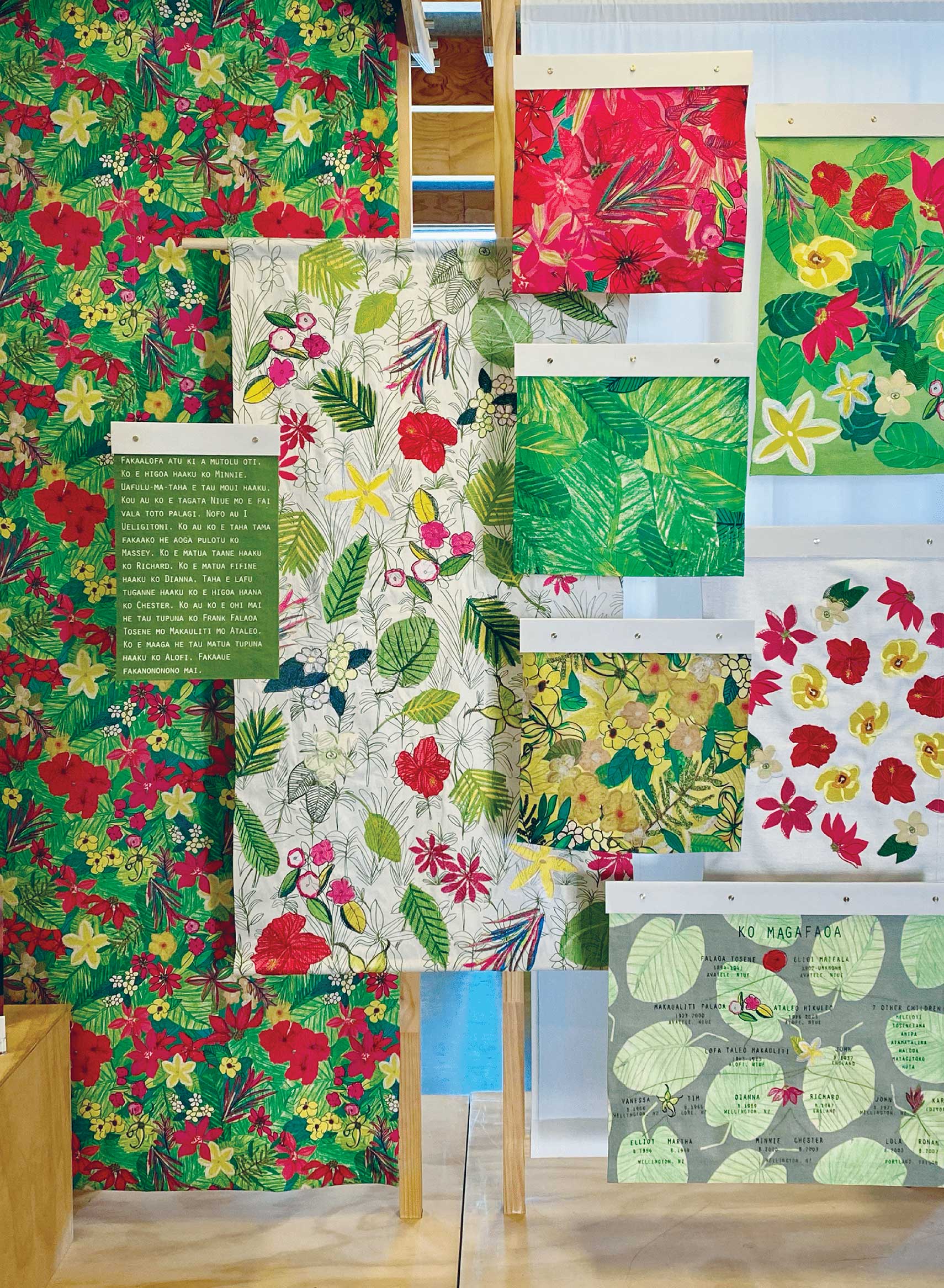 THREADS OF CONNECTION is a textile collection inspired by Niuean flora, embroidery techniques, and traditional motifs and colours. Influences were also drawn from cherished items in Niuean culture. The project highlights the lack of visibility of Niuean material culture through intricate digital embroidery, digital print, and screen print, creating versatile designs for interior objects like wall hangings, quilts, and cushion covers.