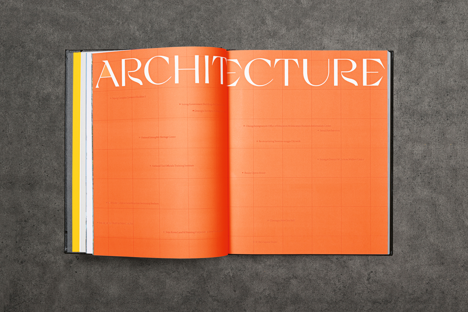 This publication presents 30 projects of an architecture and engineering firm on the occasion of the company’s 30th anniversary. The visual concept of the book is based on the axes of a coordinate system: the contents on the X-axis address the philosophy and history of the respective projects, while the Y-axis provides factual figures and data. The geographical coordinates of each featured building are used as a graphic style element. To highlight the studio’s bold style, the publication is designed with linear typography and strong colour contrasts.