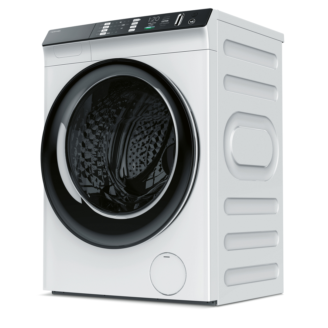 This washer-dryer can be operated via an innovative metal slider, which makes selecting programmes and setting parameters easy. In addition, the device control supports individual adjustment via voice control or a mobile app. The control panel tilts at an angle of 30 degrees to meet ergonomic criteria. Equipped with a nanosilver ion chamber, the washer-dryer kills bacteria effectively.