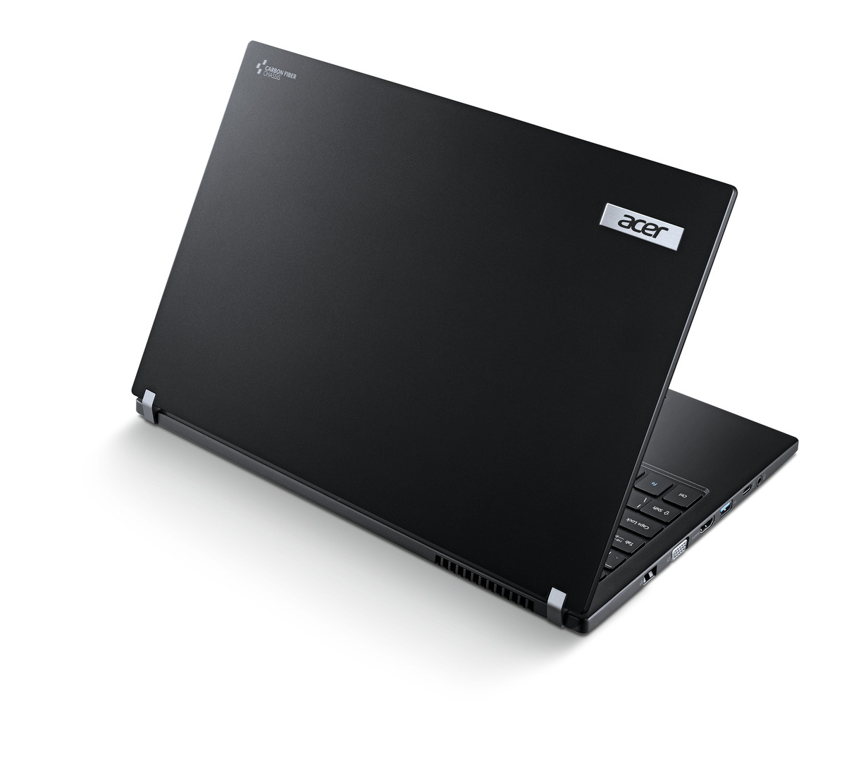 The TravelMate P6 is a notebook designed for high performance and security. Its top cover is made of durable carbon- and glass-fibre materials, while the casing itself is fashioned from aluminium alloy, making the notebook durable and long-lasting. These features are underscored by the matt-black colour of the casing and its striking profile. A fingerprint sensor, dust-protected ventilation system and shock-resistant hard drive are additional features of the notebook.