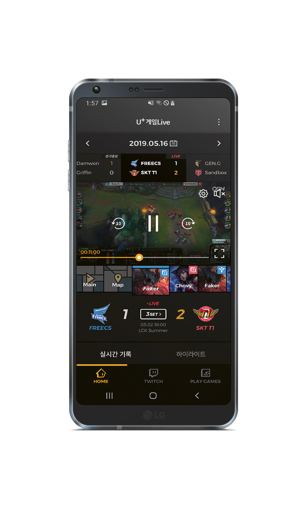 The U+Game Live app is a service for LGU+ 5G customers that offers vivid and accurate game streaming combined with the information about specific players that a viewer wants to see. Through this game-streaming platform, which is free of buffering, up to three live videos and matches of favourite players can be selected. The game information can also be checked in real time, and users enjoy analysing the game like experts. The app provides multiple features, such as the ability to replay scenes or watch them in slow motion or to have the champion characteristics shown that were used by a certain player during the game.