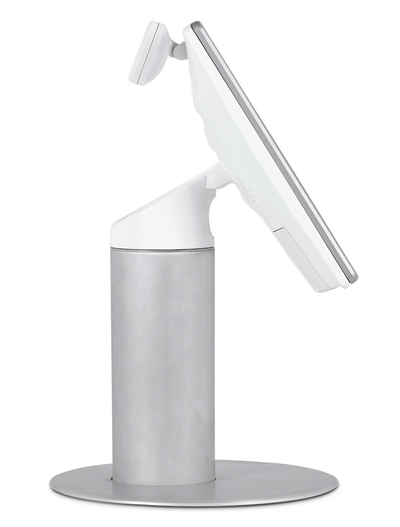 The Ultimo POS terminal is equipped with an NFC-enabled reader and a camera, which are both mounted on the front in order to provide customers with direct access. In addition, a barcode reader can be attached to the frame of the swivelling and tiltable multitouch 15” screen. Concealed connectors give the terminal a tidy appearance. The aluminium housing is available in black or white. The screen can be mounted either to the middle or side of the base, or even attached to the wall.