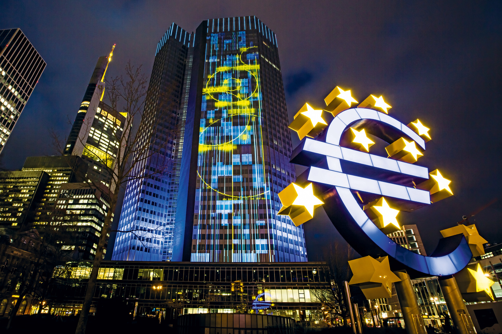 This facade projection installation for the two premises of the European Central Bank is part of the Luminale 2016 in Frankfurt am Main, Germany. The theme of the generative installation is focused on European symbols, along with the official motto of the European Union “United in diversity”. The starting point for the light installation is the European anthem, an excerpt from the prelude to “Ode to Joy” from Beethoven’s 9th Symphony. The music is graphically interpreted into forms and colours on the facade of Frankfurt’s Eurotower. While the anthem served as inspiration for the basic graphical patterns, some of Europe’s empirical sociocultural facts are used to alter the generative code into ever-changing structures.