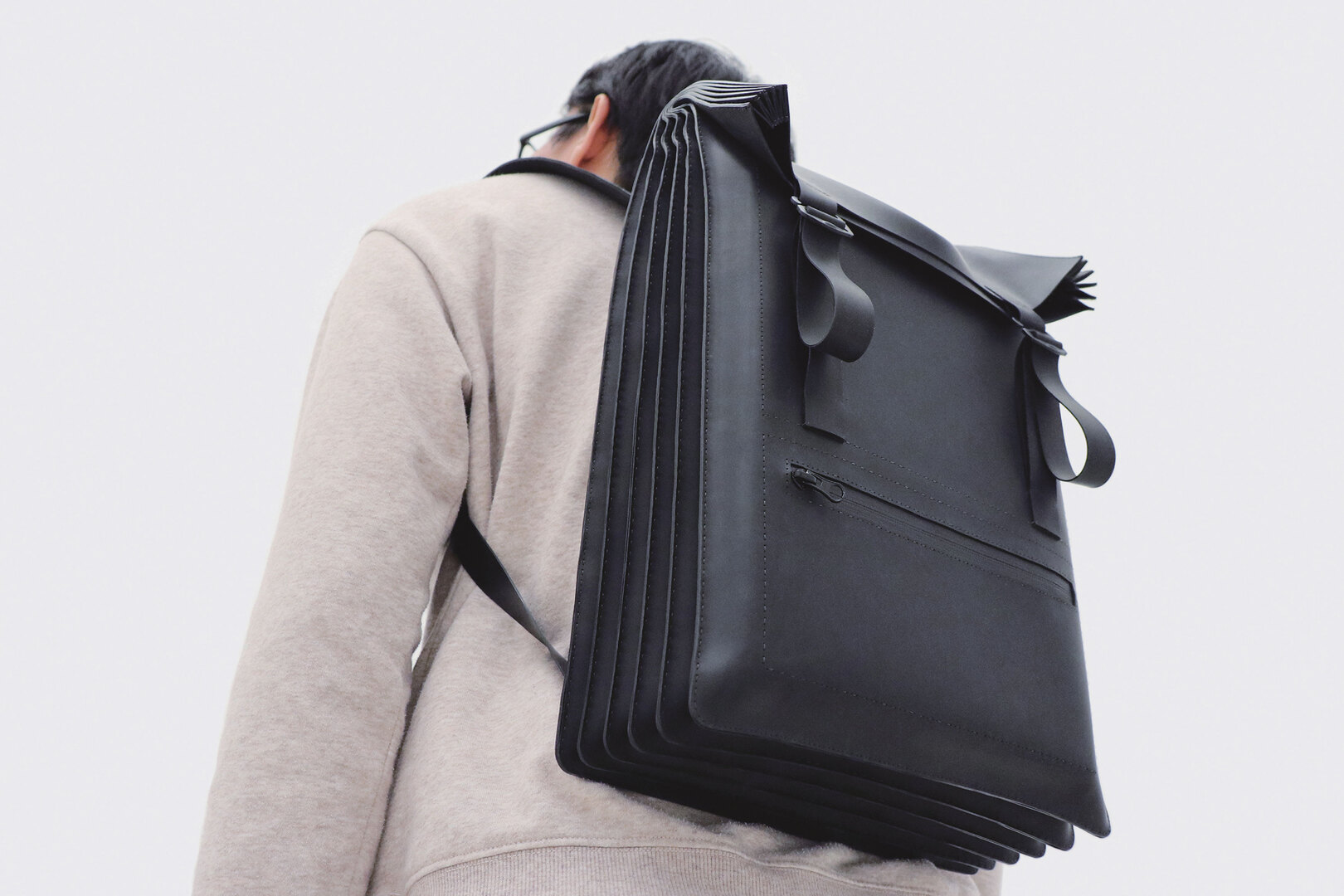 UN/LIMITED explores the requirements of volume and material through a daily backpack. The backpack is expandable to accommodate unexpected items but it can also be compressed into a more streamlined form to allow for better mobility. Guided by the design philosophy of 'design by reduction', the backpack is sealed by heat welding and made of a mono-material, DuPont Hytrel, or similar recyclable thermoplastic elastomers with different levels of hardness. This feature is in stark contrast to the backpacks on the market today, which are usually multi-material and difficult to recycle. They key inspiration stems from plastics that improve with age. The objective is to design a product with recyclable plastic that is sustainable, while creating a genuine bond with the user. The product has to improve with age and counter some of the negative characteristics often attributed to plastics as a cheap, transient and unemotional material. Both the longevity of a solution and its place in a circular economy are important considerations. What is its service life, how can it be reused, recycled or repurposed if it comes to the end of its utility? UN/LIMITED provides cyclists with space based on their needs. However, for the limitation of a bicycle, cyclists should not be a greedy user. They have to ensure the load they carry can keep their journey comfortable, without turning it into an obstacle. The project reflects balance and interaction between cyclists and their freedom of carrying as much, or as little as they can. Red Dot Award: Design Concept | Ready to Launch | Travel