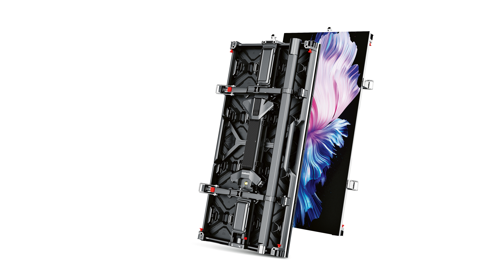 The URMIII DT is a powerful LED screen unit for use in harsh environments. By combining extruded aluminium and die-casting technology, the reinforced framework is resilient enough to withstand a hurricane. It can resist a tensile force of over 4 tons without damage or significant deformation. Without any steel construction support, screens up to 15 metres high can be built. The URMIII DT is waterproof according to IP66 protection class and features a highly efficient heat radiator system.
