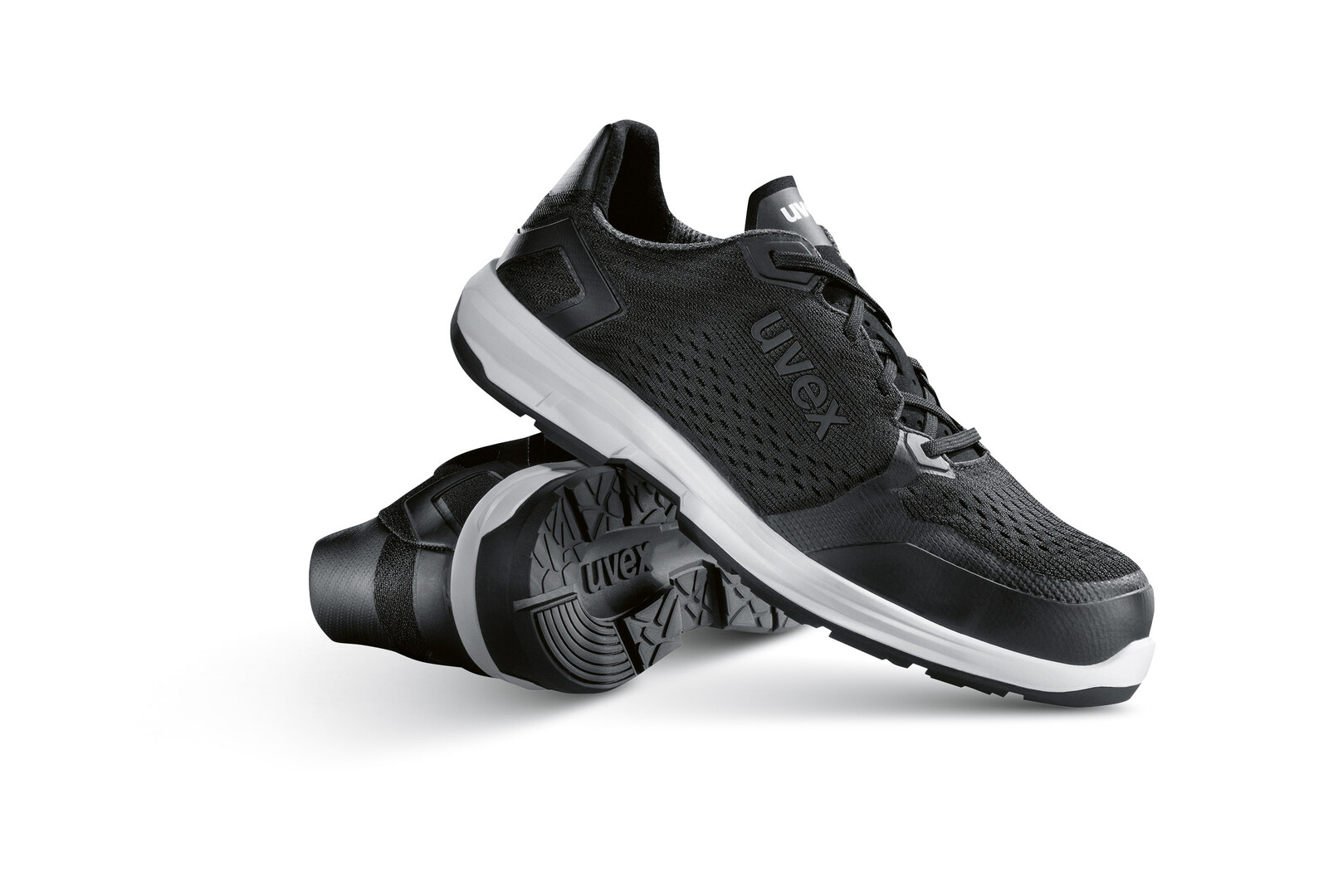 The uvex 1 sport safety shoe connects sophisticated functionality with a sporty design and a contemporary look with first-class wearing comfort. This is due to its low weight, climate-optimised materials and a flexibly designed double density polyurethane outsole. It is characterised by optimal cushioning and anti-slip properties. The shoe, which was designed on a newly developed shoe last, is rated safety class S1–S3 and features ESD capability. It has an almost seamless upper and a metal-free toe cap as well as a penetration-resistant insole for high safety. Additionally, it is suitable for people who are allergic to chromium.