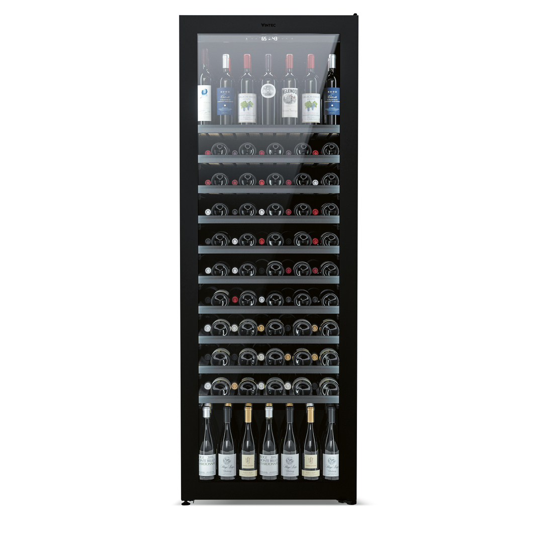 The large Vintec V200 Wine Cabinet is designed to recreate storage conditions found in only the best natural underground cellars. The use of innovative technology ensures a stable temperature as well as optimum humidity and air circulation. The door is additionally equipped with UV-absorbing glass. Further features are the “Perfect Cradle” shelves for an ideal distance between the bottles, and the OENO app, which helps to manage the wine collection.