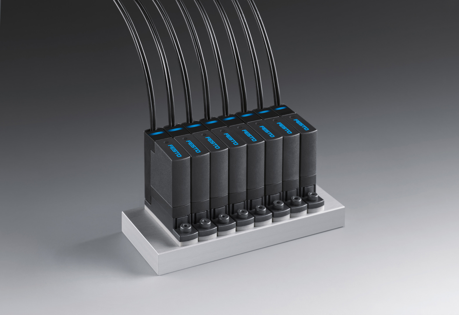 Vyka is a media-separated solenoid valve for dosing liquid media. A current-controlled magnet enables highly precise and reliable operation. The media valve is mainly used in laboratory automation and medical technology, as well as in highly precise filling applications involving sensitive and aggressive media, for example in packaging contact lenses or in the perfume industry. The high-visibility LEDs arranged in a row form a light strip. The blue light used thus increases the recognisability of the Festo brand.