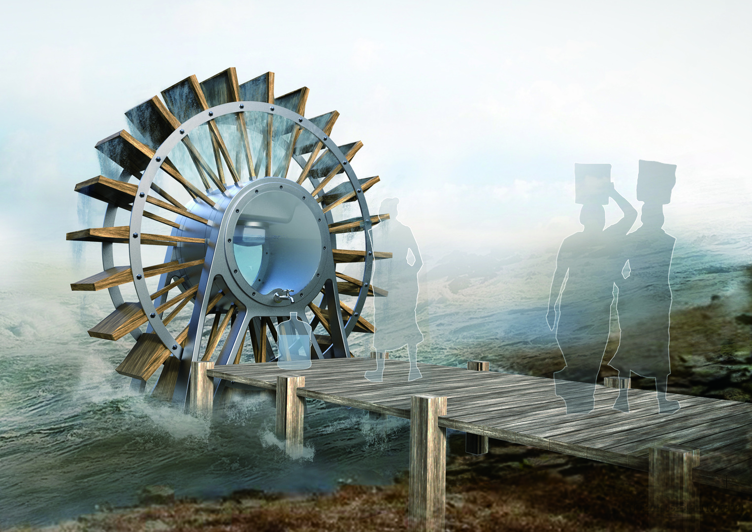 While enjoying pure water, have you ever thought about the people in remote villages and towns who have no clean source of drinking water? The public Waterwheel Filter may be a design solution for this problem. It is cleverly designed by using traditional waterwheels and modern water filtration equipment, with the principle that water from the bucket will generate water continuously into the waterwheel, thus cleaning the dirty water by the pressure of the water flow. Not only does this system achieve clean drinking clean water, it also does not consume any external energy.