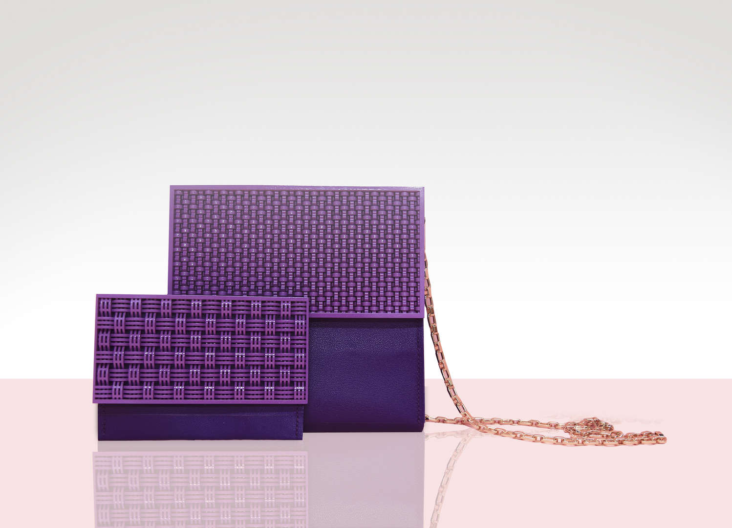Inspired by bamboo art, we reinvent the aesthetics of bamboo weaving craft by using 3D printing technology and further combining it with handcrafted leather techniques. This creates an entirely new fashion expression. The mixing of traditional beauty and modern beauty is emphasised by the contrasting interwoven and regular patterns with a smooth surface. WEAVE is a project in new aesthetic exploration and possibilities through the adaptation of materials.
