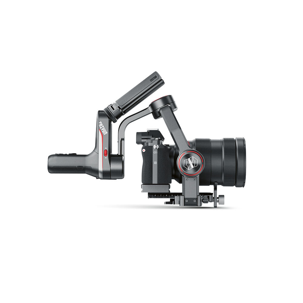 The compact and lightweight Weebill-S gimbal is compatible with mirrorless and DSLR cameras. Optimal recordings can be made thanks to an improved algorithm, more powerful motor and a smart ZY Play app. The ergonomically shaped grip together with the new Sling mode ensures smooth camera guidance. An HD image transmission module with low latency allows live streaming within a distance of up to 100 metres on three devices.