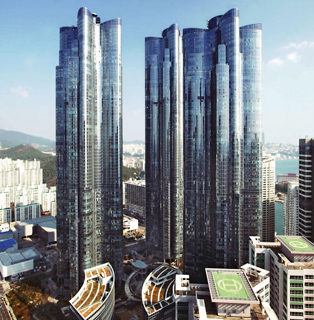 The 300-metre tall “We’ve the Zenith” is the latest landmark of Busan’s Marine City. As the impressively tall residential building, the 80-storey high-rise is the extraordinary outcome of the collaboration between outstanding architects, engineers and landscape designers. The building’s contours are reminiscent of the beautiful waves of the sea at Haeundae and of a fully opened lotus flower, the symbol of prosperity. The Zenith is not only an aesthetic feast for the eyes, but also the most secure skyscraper in the world. With a safe haven on every third floor, residents do not have to worry about their safety in the event of danger.