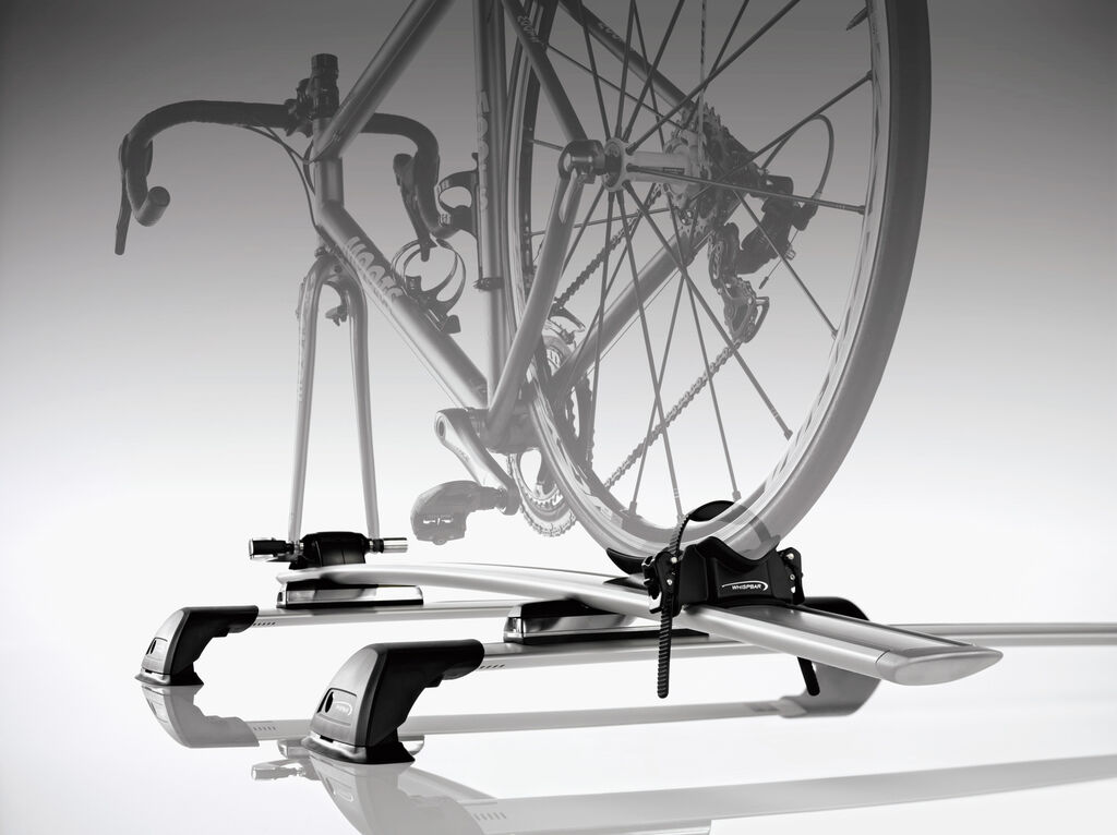 The bicycle fork mount was developed for the professional and secure transport of road and mountain bikes. The major component parts of the product are made of aluminium and nylon. It is based on a quick-exchange system for mounting a conventional 9-mm fork or a 15-mm through-axle fork using a quick-release mechanism. The configuration does not necessitate the use of tools. A central locking system secures the bicycle to the carrier.