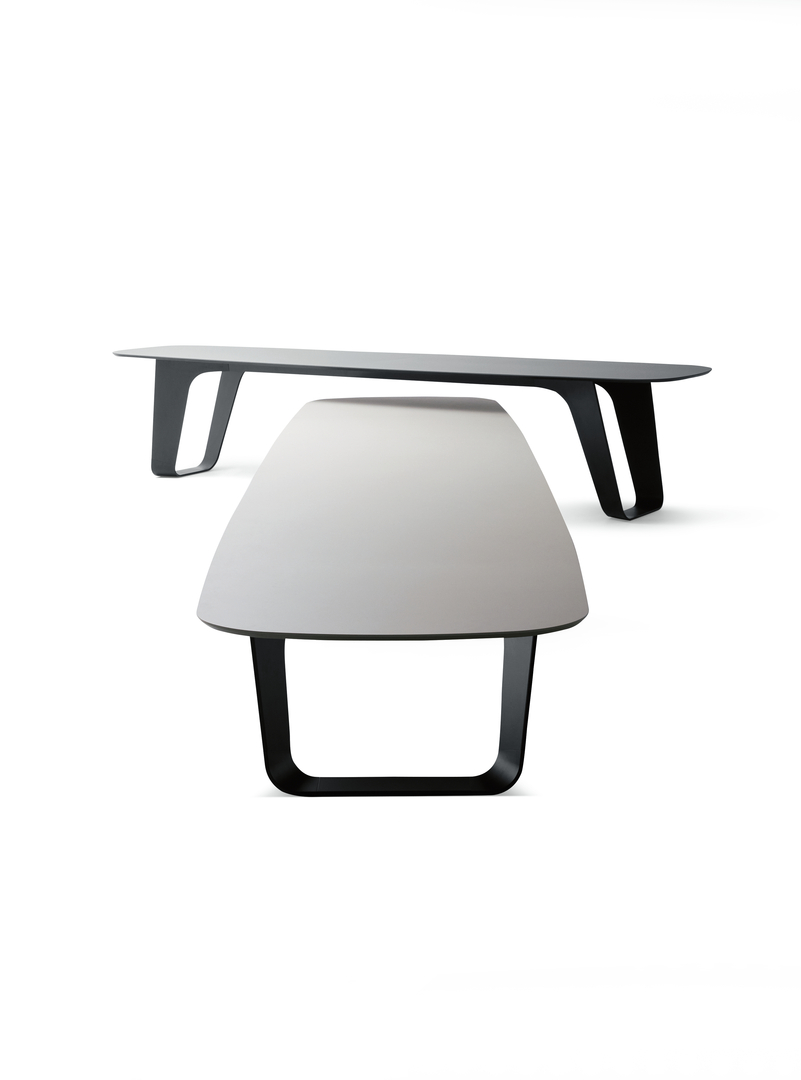 Based on a holistic design approach, this table impresses with its free arrangement in a given room. With its gently curved lines, it harmonises with the working environment and creates relaxing scenarios of togetherness. Its balanced design, which avoids corners and edges, is complemented by a haptically pleasant feel. It is lightweight and thus can be easily adapted to different workplace conditions.