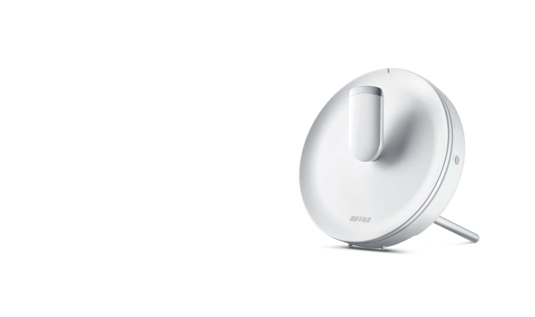 The WTR-M2133HP wireless router shows an extraordinary circular form embodying a spreading radio wave. The tri-band router includes three wireless modules and can thus establish three separate connections simultaneously. In this way, interference from Wi-Fi devices that are logged in at the same time is prevented. This is an advantage when it comes to data-intensive video-on-demand content in particular. The housing accommodates two non-directional antennae, while the antenna situated at front centre can be adjusted to attain a higher bandwidth. The router may be placed horizontally or vertically.