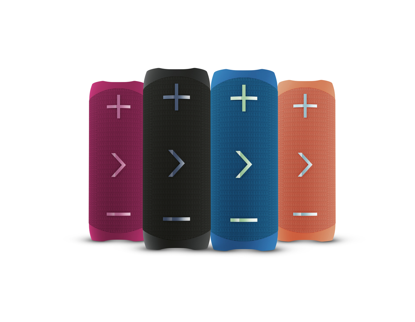Der Bluetooth-Lautsprecher X-3D MAX besticht mit seiner raffinierten Textiloberfläche in leuchtenden Farben und der klaren Grafik ebenso wie mit seiner hohen akustischen Leistung.