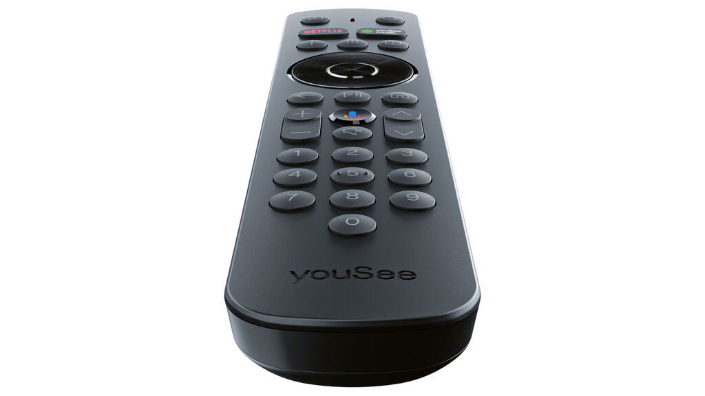 The YouSee Audio remote control is designed for YouSee TV and streaming solutions. The device is made from recycled plastic and fits comfortably in the hand thanks to its soft contours and noticeable weight. A recess on the back enhances its ergonomic quality. Differently shaped buttons made from varying materials make it easy to use, and selected functions are highlighted with glossy elements. A radially structured control circuit provides additional visual orientation.