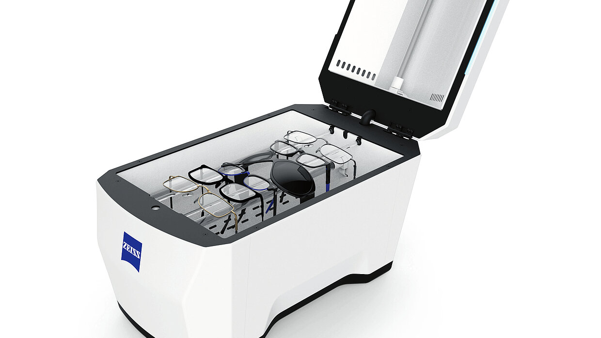 UVClean is a UV-C germicidal chamber which has been specially designed for spectacles. The corona pandemic requires that spectacles be laboriously cleaned after fitting. Cleaning with UV-C is a reliable method to solve this problem. The disinfection chamber ensures the correct dose and delivers direct exposure without shadowing. The unit uses four UV-C lights and features additional safety functions, including a self-locking lid and a ventilation system which meets all parameters for safe disinfection.