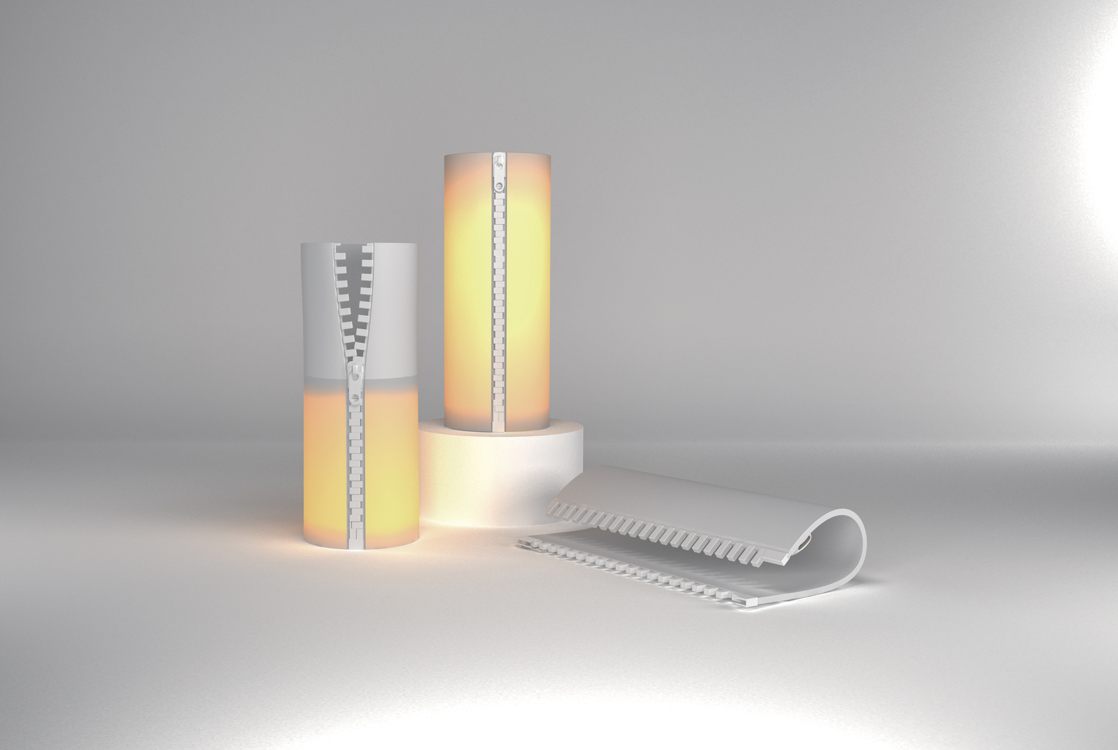 Zypper hopes to replace conventional lamps with a design that is both interesting and intuitive to engage. Zippers are things that are easily overlooked. However, upon closer observation, it has innate characteristics of separation, closure and regulation. When zippers are applied to the lamp concept, it further amplifies how zippers are used.